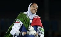 Kimiya Əlizadə Zenoorin, 2016 Yay Olimpiya oyunlarında taekvondo yarışlarında İran adına bürünc medal qazandığı zaman - Foto/Robert F. Bukaty