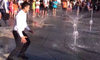 Mariupola 15 iyun səfəri zamanı Ukrayna prezident Vladimir Zelenskiy yerin üstündə qurulan fontan sahəsinin içindən qaçaraq keçib. Bu haqda Donbas TV-nin səhifəsində video yerləşdirilib.